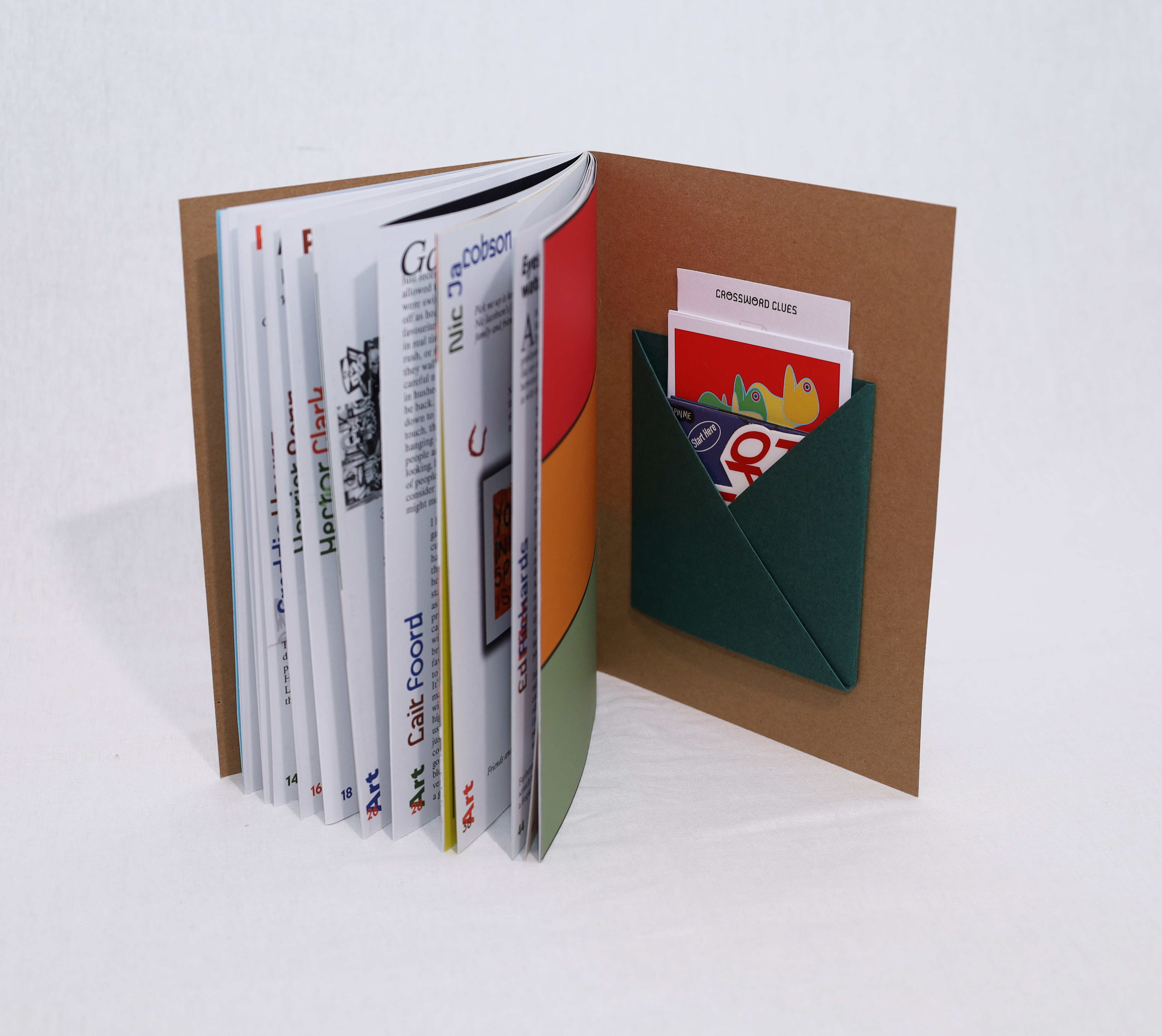 Featuring flips, folds, pockets, post cards, playlists, coupons, concertinas, crosswords, colouring, articles, artists, interviews, gallery reviews and plenty of stories.